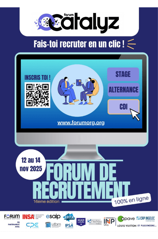 Le Forum CATALYZ est de retour pour sa 16ème édition, les 12, 13 et 14 novembre 2025 ! Forum 100 % en ligne ! Notre objectif est de générer le contact entre les étudiants, les recruteurs et les entreprises. Cet évènement propose des offres et opportunités en particulier pour les profils suivants : Agronomie Biochimie […]
